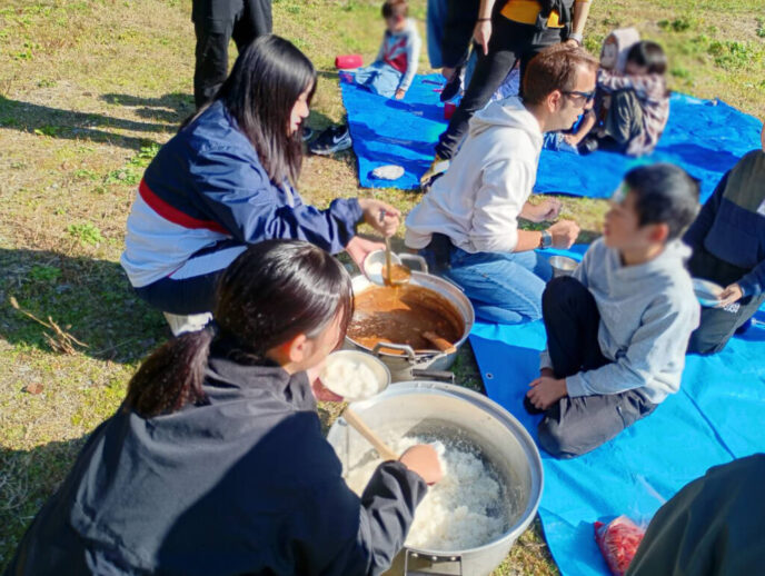 英語での自己紹介から始まり、自然を活かしたワークショップやカレー作りなど、盛りだくさんのプログラムを楽しみました。