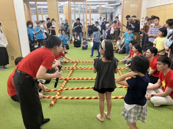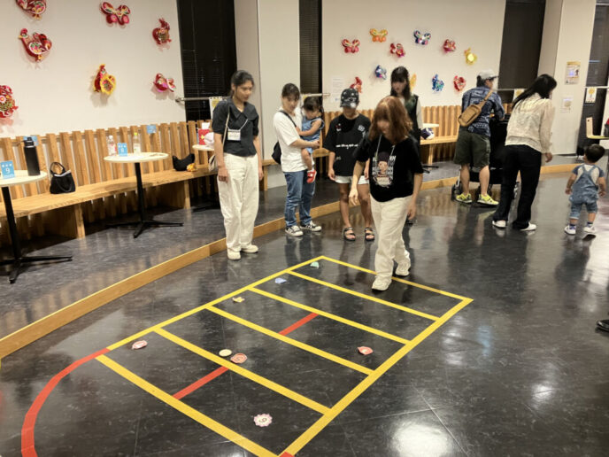 日本・ミャンマー・フィリピンの遊びをはじめ、さまざまなゲームで遊んだり、提灯に絵を描いたりして、世界の文化にふれるひとときとなりました。